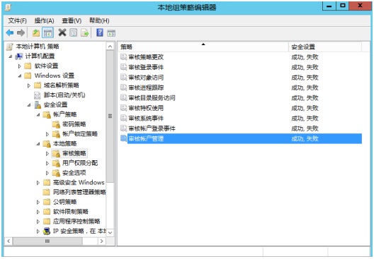 審計帳戶登錄事件、審計帳戶管理、 審計目錄服務(wù)訪問、審計登錄事件、審計對象訪問、審計策略更改、審計特權(quán)使用、審計系統(tǒng)事件、審計過程追蹤均設(shè)置為:成功,失敗