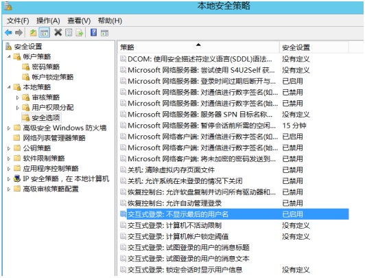 “交互式登錄:不顯示上次的用戶名”設(shè)置為“已啟用”