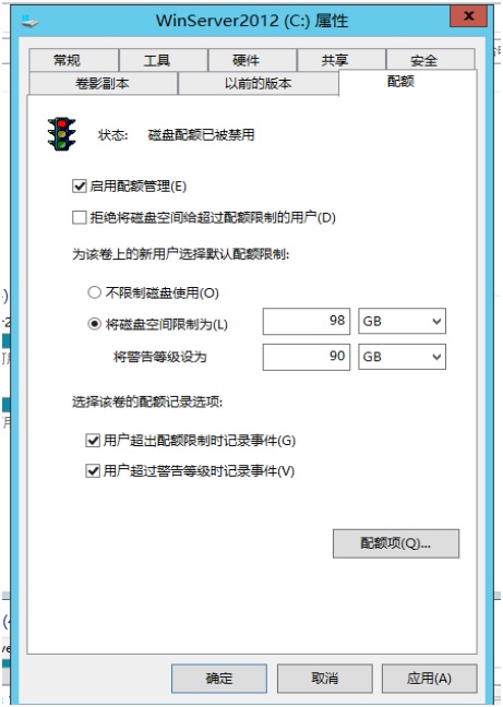磁盤配額可以限制指定賬戶能夠使用的磁盤空間,這樣可以避免因某個用戶的過度使用磁盤空間造成其他用戶無法正常工作甚至影響系統(tǒng)運(yùn)行操作流程:進(jìn)入“我的電腦->C盤->屬性->配額”: