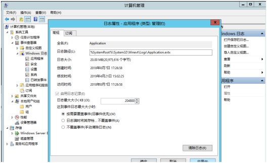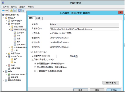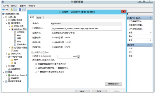 配置日志文件容量,避免受到未預(yù)期的刪除、修改或覆蓋等操作流程:進(jìn)入“控制面板->管理工具->計算機(jī)管理->事件查看器->windows日志”