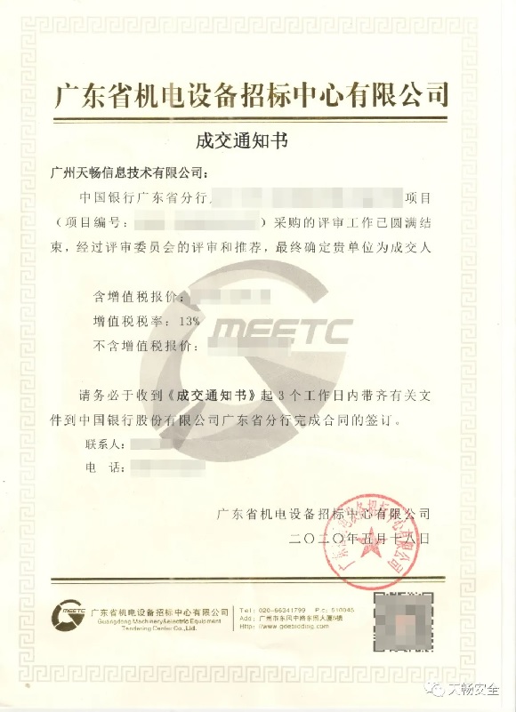 花開初夏,捷報(bào)頻傳,近日,天暢信息成功中標(biāo)中國(guó)銀行廣東省分行采購(gòu)項(xiàng)目。本次成功中標(biāo),離不開公司各部門同事的全力配合,在此,我們對(duì)為該項(xiàng)目中標(biāo)付出辛勤努力的同事們表示衷心感謝,希望在接下來(lái)的工作中,再接再厲,爭(zhēng)取更大的成績(jī)。