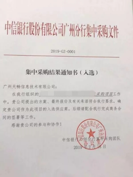 熱烈祝賀天暢信息中標(biāo)中信銀行股份有限公司廣州分行集中采購網(wǎng)絡(luò)安全設(shè)備項(xiàng)目。2019年2月,基于中信銀行廣州分行實(shí)際環(huán)境和需求的理解,天暢信息從安全、先進(jìn)、充分融合的角度提出了一套技術(shù)解決方案,該方案可行性高,最終報(bào)價(jià)及相關(guān)承諾均符合中行銀行要求,得到充分肯定,成功中標(biāo)。感謝天暢信息同仁對(duì)本次項(xiàng)目的大力支持,相信在大家的共同努力下,我司今年必將取得更好的業(yè)績!